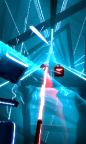 Eure Geschicklichkeit und euer Taktgefühl sind gefragt. Schneidet mit den Laserschwertern die fliegenden Blöcke im Takt. Die Farbe und Richtung müssen jedoch auch stimmen.